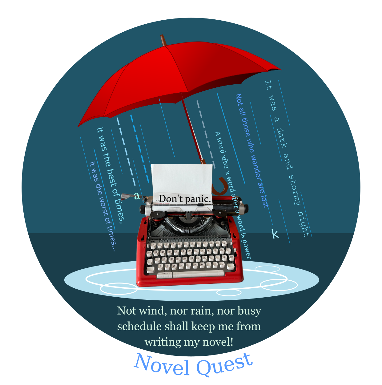 Illinois Novel Quest uses the Writing Quest framework, and the theme this year is “Not wind, nor wain, nor busy schedule shall keep me from my novel.”