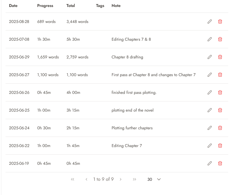 Trackbear is a fantastic free tool with a ton of options for tracking your writing (any time of year, not just during Novel Quest). The possibilities are wide-ranging, from tracking words, chapters, time, pages, scenes, and lines. You can also track multiple items per project (for example, you could track both new words written and time spent editing).